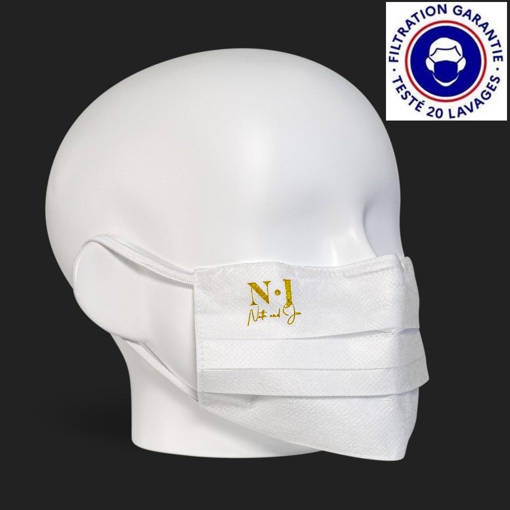 Masque blanc 3 plis – Lavable 20 fois – Logo or – CAT UNS-1